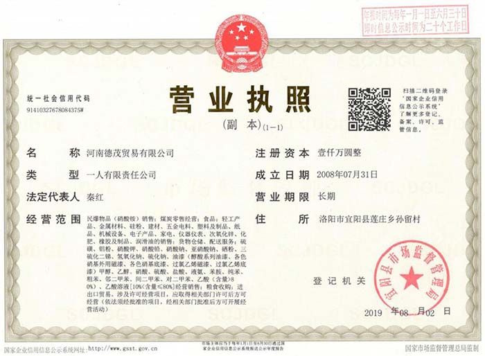 河南德茂貿(mào)易有限公司成立于2008年7月,是一家綜合型的貿(mào)易企業(yè),注冊(cè)資金為1000萬(wàn)元人民幣,是河南省前進(jìn)化工科技集團(tuán)股份有限公司的全資子公司。公司位于河南省宜陽(yáng)縣城西9公里的陳宅村南,北有安虎線(xiàn)通過(guò),交通便利,北面約1公里有洛河自東向西流過(guò)。該地區(qū)屬溫?zé)釒Т箨懶约撅L(fēng)氣候,年平均氣溫14.4℃,最高氣溫43.7℃,最低氣溫...